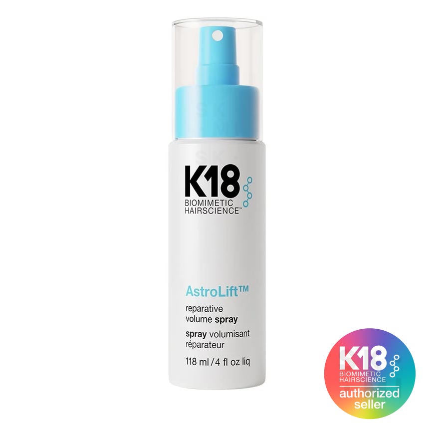 A lightweight, buildable volume spray, powered by K18PEPTIDE™ to reverse bounce-depleting damage that can impact all hair types—especially fine, fragile, aging and breakage-prone hair. Hair fiber thickening, non-sticky blend helps hair look and feel fuller, delivering flexible volume for up to 2 days —with or without heat styling on dry or towel-dried hair.
