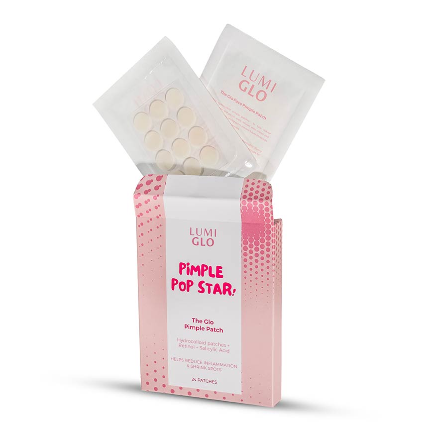 Lumi Glo proudly unveils the latest addition to its award-winning collection: The Glo Face Pimple Patch. 100% hydrocolloid pimple patches to help reduce inflammation and shrink spots. Infused with retinol and Salicylic Acid to help unclog pores, prevent future breakouts and speed up the healing process. Experience visible improvement in pimple size and redness in 6 hours. Perfect to apply before bed to draw out the impurities through the night.