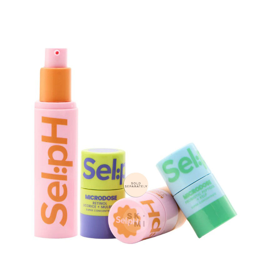 But that’s only the beginning. Sel:ph’s team has designed First Base to effortlessly combine with our Sel:pH Microdoses (super concentrates that focus on key needs for your skin) and accelerate their powerful ingredients.
