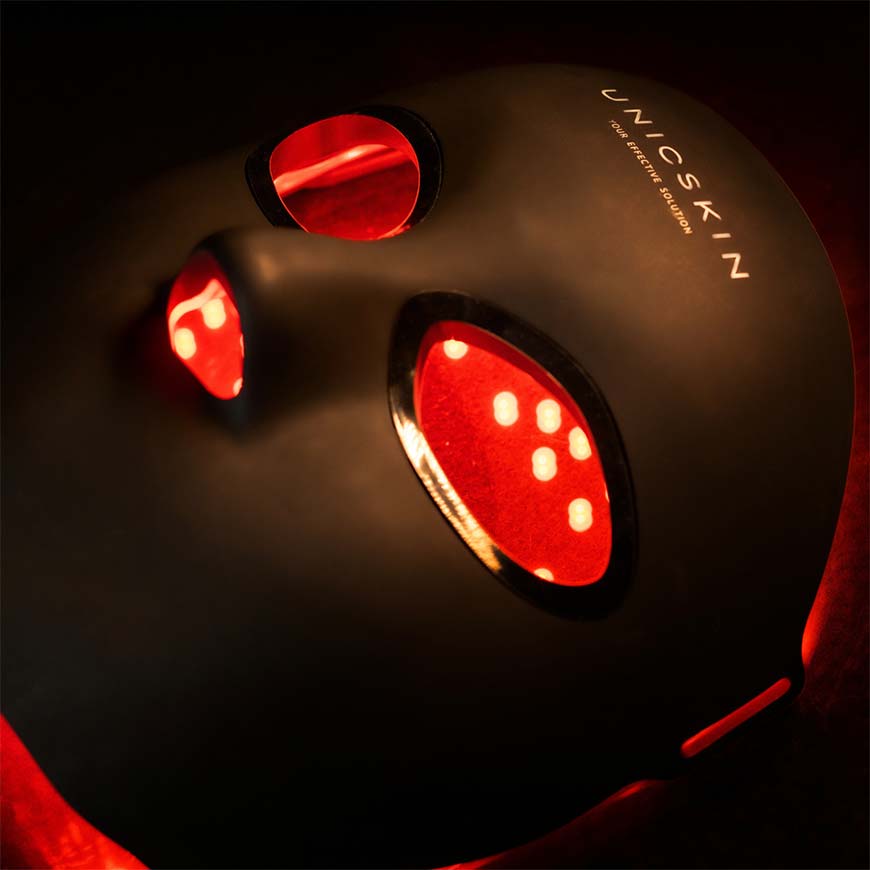 NIR light (850 nm) reaches the deepest layers of the skin , activating collagen and elastin production to improve elasticity, firmness, and radiance, visibly reducing the signs of aging. This light is invisible to the human eye and works simultaneously with the rest of the LED lights .
